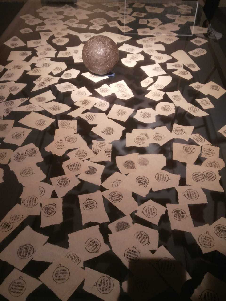здесь забыл сфоткать автора, но очень понравилась работа. пушечное ядро лежит на оттисках медали "За взятие штурмом Ахульго".