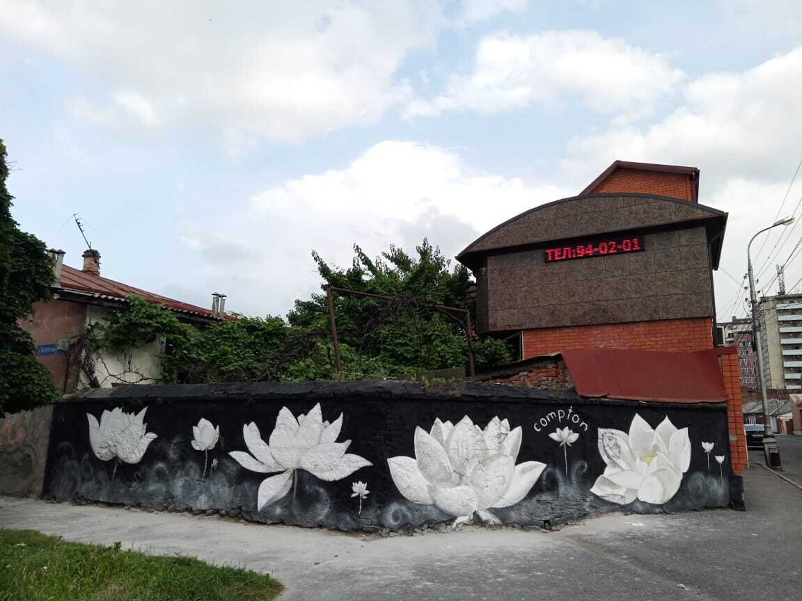 цветочки, в общем, лотосы. ну ладно лотосы, а вот зачем писать там COMPTON? это же какой-то хип-хоп головного мозга...