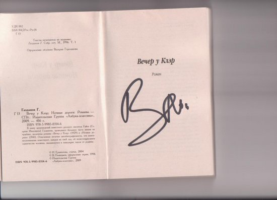 забавный случай произошел с моим приятелем в Москве на днях. накануне выступления U2 в Лужниках приятель прогуливался по Тверской и наткнулся на лидера группы Боно, в окружении небольшой толпы фанатов. не растерялся, достал книгу, которая была с собой, и вот, автограф Боно в книге осетинского писателя Гайто Газданова.