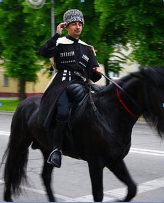Традиционное черкесское приветствие, известное еще до рукопожатий...Берд Бор приветствует зрителей 21 мая 2012 года в Нальчике на шествии в День памяти..
