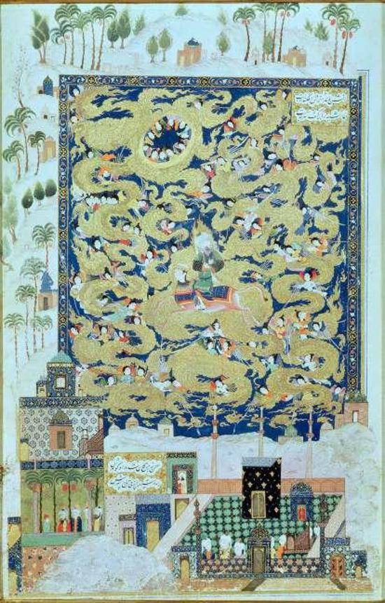 Несколько картин посвящены вознесению Пророка на небо рядом с Каабой. Мирадж  (от арабского «лестница»);  (араб. ночное путешествие и вознесение) — чудесное путешествие Мухаммеда в Иерусалим и его вознесение на небеса. В Коране говорится, что Аллах однажды ночью перенес Пророка к отдаленнейшей мечети (аль-Масджид аль-Акса), «вокруг которой место, благословенное Аллахом».
