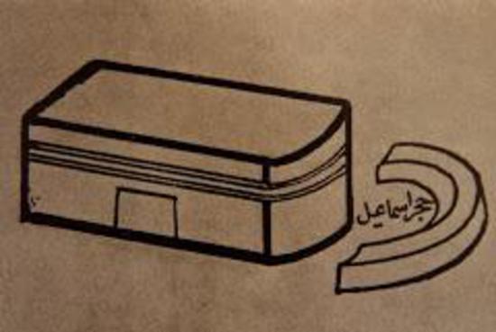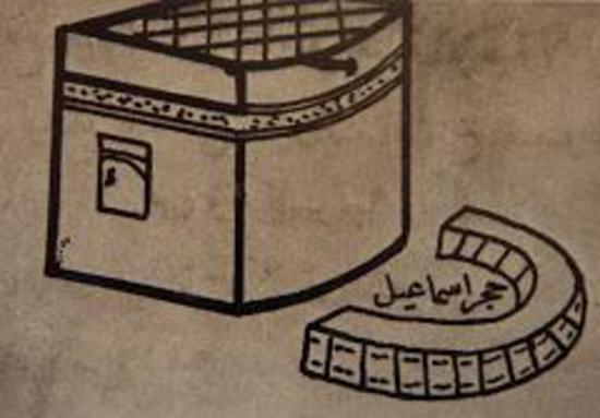 На этом рисунке Кааба имеет прямоугольное основание, небольшую  высоту и круговую стену справа. На втором рисунке Кааба  уже изображена после ремонта, который был произведен под руководством Пророка Мухаммада: основание  Каабы изменилось, стало четырехугольным.