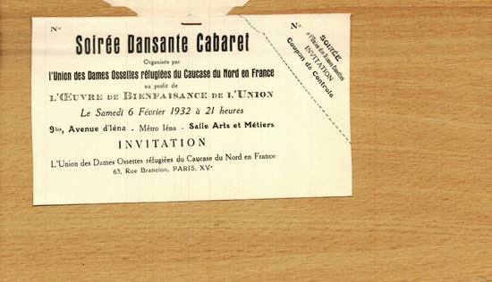 Объявление (флайер) о бале женского осетинского общества в Париже.