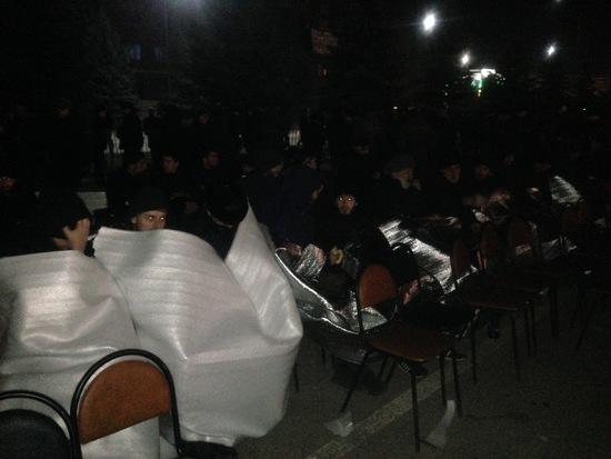 Митинг продолжается. К 23-30 на площади в Магасе остаются около трех тысяч жителей республики, еще около полутора тысяч человек отогреваются и отдыхают в расположенных в округе домах и припаркованных автомобилях. Организаторы митинга пока еще не получили ответ на поданное ими уведомление о продлении сроков проведения митинга.