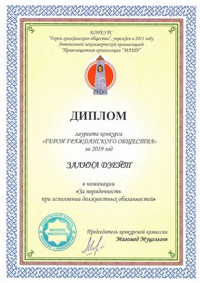 Несмотря на все трудности, с которыми ей пришлось столкнуться за прошедший год, я надеюсь, Залины продолжит приносить огромную пользу нашему народу, воспитывая подрастающее поколение в лучших традициях нашего общества. И я уверен, что она всегда будет это делать, добросовестно исполняя возложенные на нее обязанности.