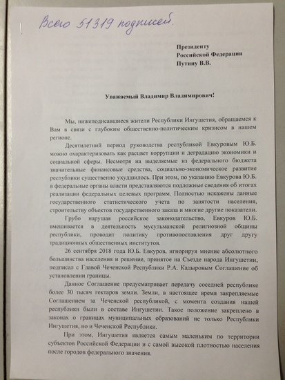 Сразу же после подачи обращения с подписями Президенту Путину, региональная власть развернула информационную кампанию, против народной акции. Несколько дней назад, Юнус-Бек Евкуров в интервью НТРК «Ингушетия» https://www.youtube.com/watch?v=54FwJVVTVFE, вновь говорил об этой теме. Обсуждать уровень профессионализма и «смелости» сотрудника телекомпании, смысла нет, он даже сформулировать вопрос нормально не смог, пытаясь и шефу угодить, и не вызвать народный гнев. А вот комментарий Евкурова я прокомментирую, ведь он упомянул в своем выступлении меня и Ахмеда Барахоева.