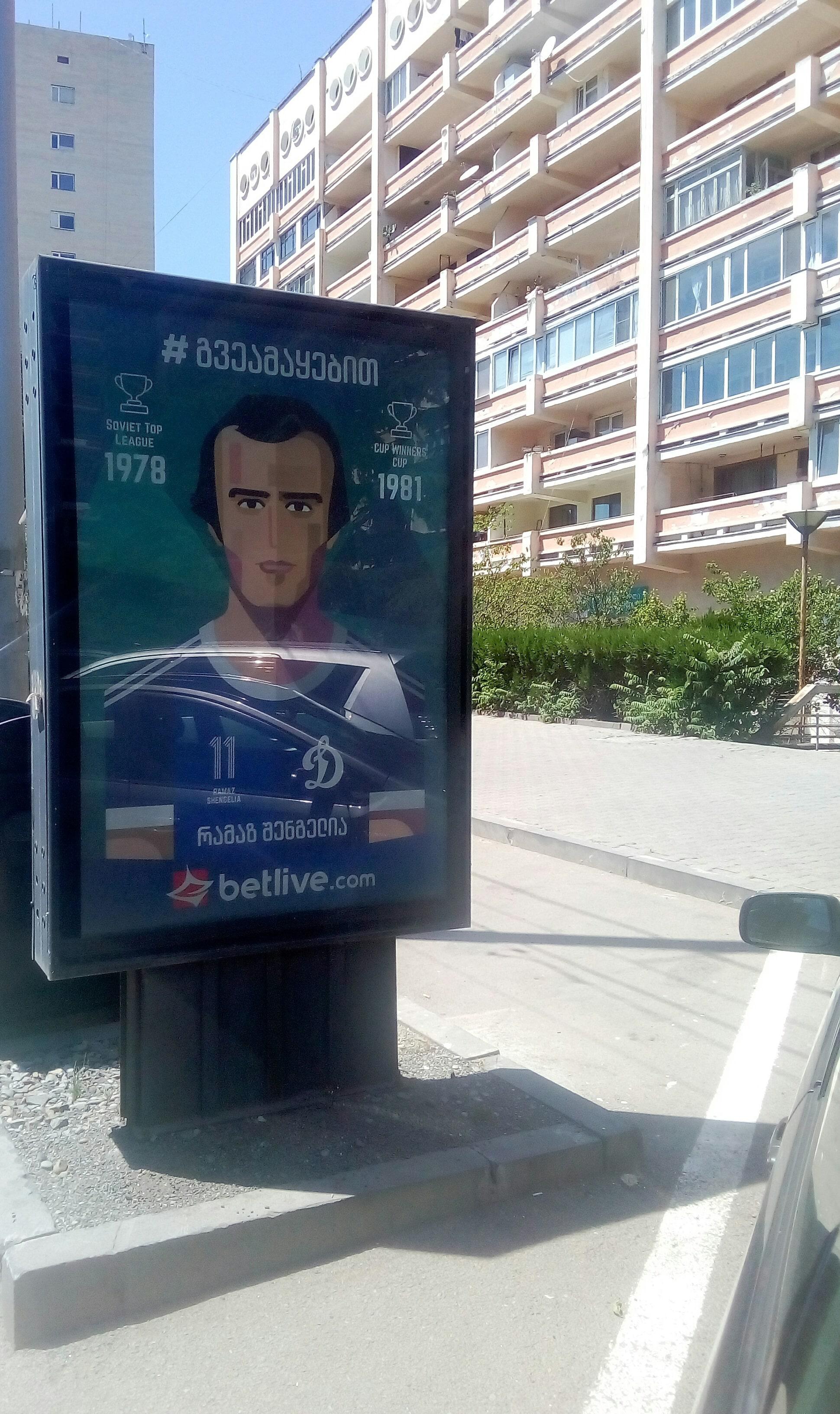Каждый день я за рулем, и  уже несколько месяцев,  постоянно, на главных улицах Тбилиси, попадаются стенды с граф. изображениями великих грузинских футболистов разных времен.