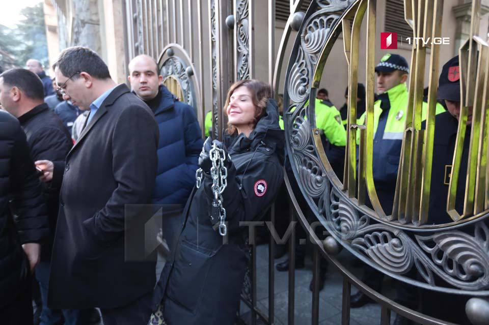 Несмотря на попытки полицейских помешать акции протеста, сторонники оппозиции в Тбилиси повесили символический замок на ограду здания правительства и пригрозили проводить подобные акции каждый четверг. Источник: https://www.kavkaz-uzel.eu/articles/342621/