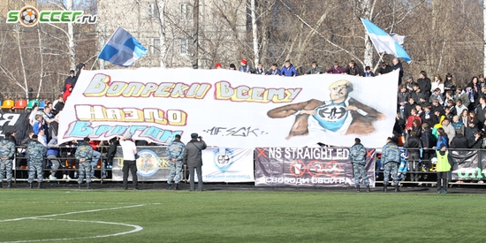 А вот Факела воронежские знатно в том же Брянске пожгли. Вот только одно интересно: неужели обилие имперок на решетке блатнее, нежели обилие баннеров с родными цветами? Я, конечно, понимаю, что сейчас модно показывать свои политические взгляды и так далее, но неужели одной имперки недостаточно? Завесь ты решетку цветами, сектор круче и красочнее будет смотреться же.