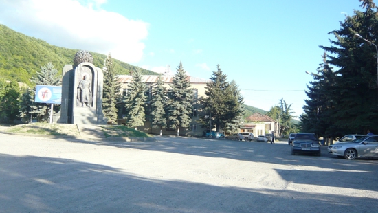 Центральная площадь с памятником  Ксанским Эриставам - осетинским князьям братьям Бибилури (Библтае - Бибиловым).... а вот почему тут такая солидная база МЧС. Ксанские Эриставы сыграли огромную роль в становлении Грузии.