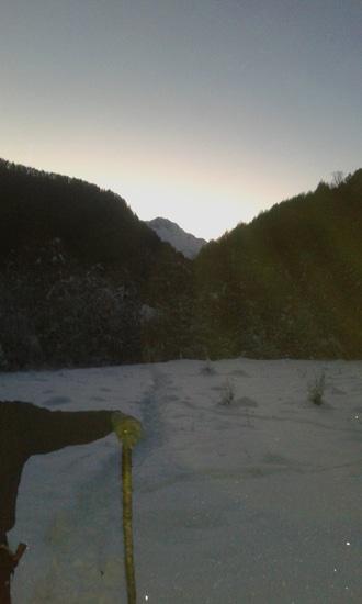 В общем, общий вид в верховьях пока не зимний. Горное солнце изо всех сил борется и отвоёвывает территории у снежной Зимы.