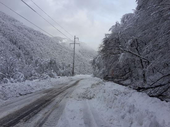 Дальше, дорога была менее убранной, но это, скорее всего из-за продолжающегося снегопада, в который убирать, вроде как нельзя. Снегопад на самом деле можно отнести к аномальным. Я не помню, что бы снег, сопровождался таким частым  падением деревьев. В селах наблюдались обрывы линий электропередач, имено из-за того, что снег, валил деревья и обламывал ветки.