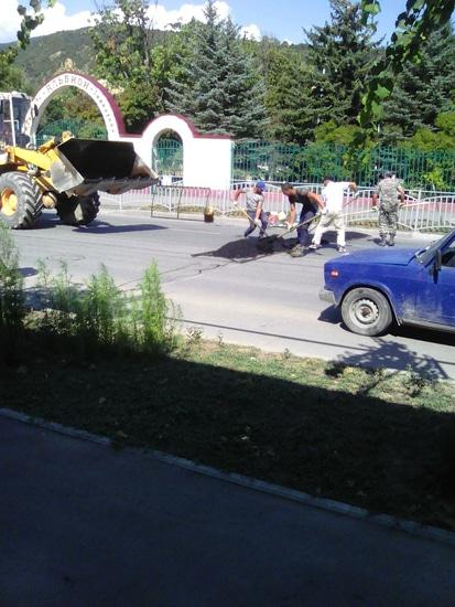 Скоро уже учебный год начинается. Подготовка уже началась и не только у школьников, но и у различных служб городской администрации. Вот, например дорожная служба, наверно так она называется, устанавливает «лежачих полицейских» у цхинвальской школы – «Альбион».