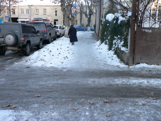 Всё хорошо, всё как и положено перед Новым годом. Но вот только, наверно мы привыкли, что снега не бывало так рано, и отвыкли его убирать. В результате в  людных местах по городу снег стал превращаться в гололед, а иногда  просто образовывались катки.