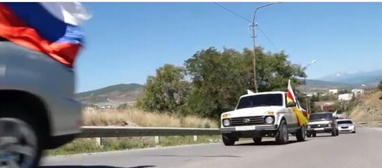 В день самого праздника, центральным событием стал автопробег, в котором приняли участие   автомобили только  российского производства,  с развевающимися   югоосетинскими и российскими  флагами. Принял в нем участие и сам Президент,  правда, приехал он на мотоциклете, марку которого я не разглядел.  Организаторами пробега выступили  молодежная организация "Единая Алания", посольство России в Южной Осетии и представительства Россотрудничества в республике. Я бы на месте организаторов выступил бы с призывом к гражданам России, а особено к государственным чиновникам, пересаживаться на российские автомобили не только в Дни России.
