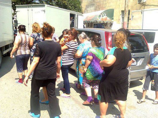 На этой фотографии женщины - беженки из Карабаха и Армении, осевшие в городе Мингячевир. Там проходили водные соревнования Европейских игр, были построены дома с квартирами для участников игр - иностранцев. Беженцам были обещаны эти квартиры после окончания Игр. И вот оказалось, что на всех беженцев нового жилья в Деревне атлетов не хватает. Женщины устроили акцию протеста у здания местной власти.