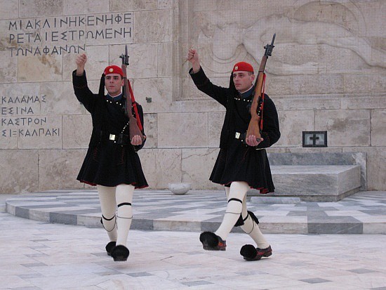 Как может жить хорошо народ,  выжимающий масло и ублажающий туристов? Они ничему больше не научились!  Им предлагали спасти финансовое положение страны в обмен на продажу острова, так греки встали на дыбы: "в греческом зале, ах в греческом зале!".  Эти люди  не хотят работать, они только много едят и хвалятся тем, что греки жили в городах, когда центральноевропейцы  лазали по деревьям.   Точно такой же словесный  эквилибризм, как у армян. Нация, оставшаяся в прошлом и неспособная предложить для будущего. Мало того, при всей их лености и непродуктивности они поднялись на войну с Турцией,  начав с политики энозиса (геноцид турков)  на Кипре!  Хорошо им тогда турки вдарили, быстро привели греков в чувство. Посмотрите на их воинов в парадных мундирах и скажите – такие собирались победить турок?  Разве если выставили бы вперед своих мраморных девиц…