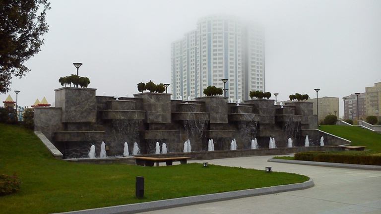 Фотографировал в немного туманную погоду, но на удивление снимки получились яркие. Этот новый сквер - сообщаю для бывших бакинцев - создан на улице на которой находится вход в Высшее Военное Училище. Там еще танк Т-34 стоит у ворот, помните? Если от танка двигаться в сторону отсутствующего уже таксомоторного парка то большое травяное поле огороженное проволокой было по левую сторону, как раз между училищем и таксопарком. Сейчас здесь вот что. В холод народу почти нет, а в солнечную погоду вся детвора и мамаши с колясками резвятся в этом парке, даже на машинах издали приезжают погулять. Молодцы бакинская власть. Наверное, сквер выстроен на средства конторы, владеющей сохранившимся под землей водным объектом.