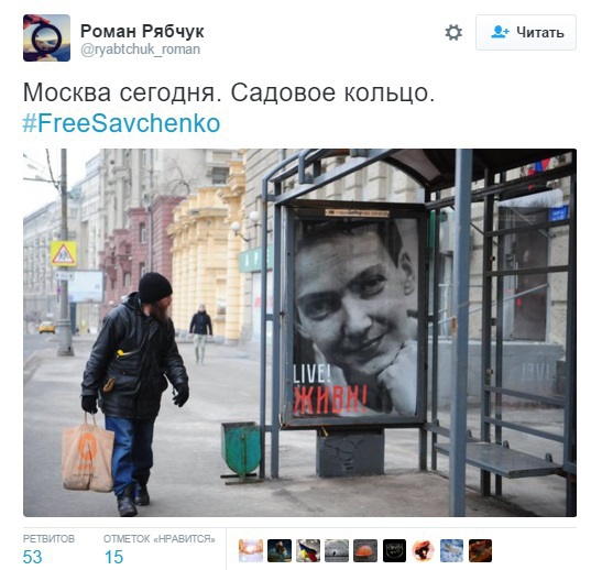 И пусть вначале подумают, если вата в голове на это способна: почему в центре Москвы появляются тайно вывешенные плакаты в защиту Савченко?