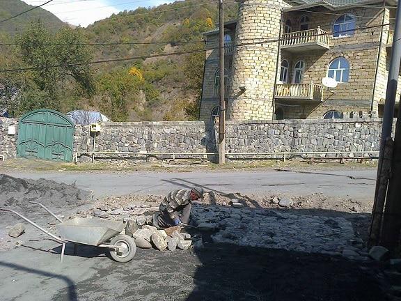 Википедист и учитель географии Намик Ман-Таш прислал из Илису фотографии - рабочие укладывают булыжник, чтобы село выглядело красивым как Крепость (Ичери Шехер) в Баку и село Лагич в Исмаиллинском районе.  В центре города Гах, в исторической части,  дороги также замощены булыжником.