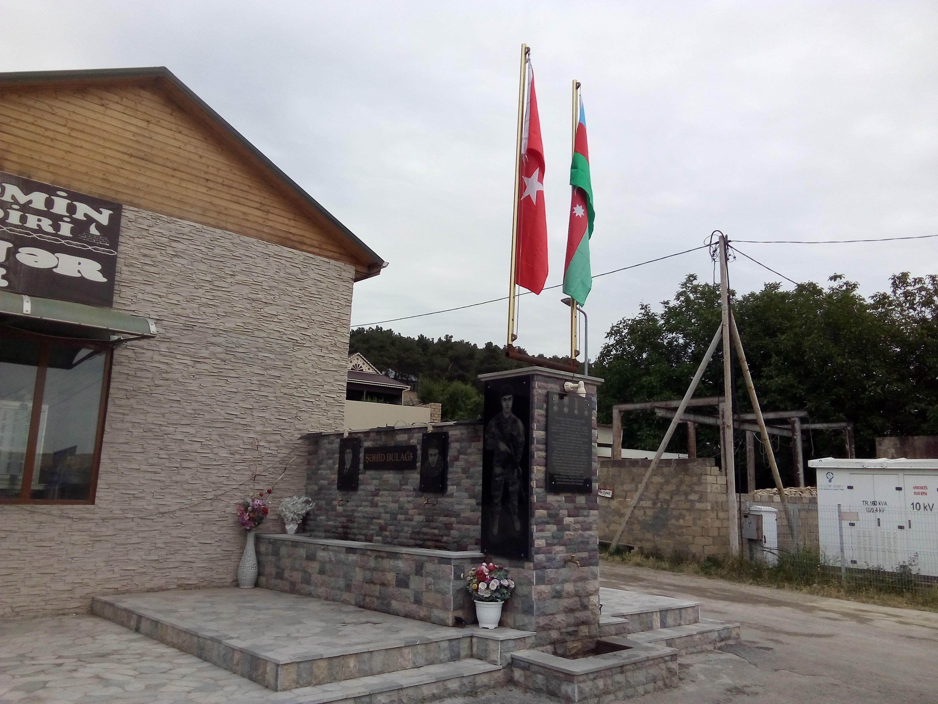 В Шемахе на стоянке обнаружил Шехид Булагы - то есть родник шехида. Такие строят близкие погибшего на войне, чтобы люди напились воды, увидели героя, прочитали о нем и просили Аллаха дать покойному место в раю. Шемахинский шехид, как написано на доске, служил в спецназе, 6 месяцев провел на учебе в Турцию, погиб при освобождении Физули