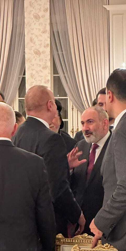 Есть две интересные фотографии, на которых много видно. На первой Пашинян и Алиев весело и мило общаются. Не помню, чтобы армянский лидер так непринужденно и тепло беседовал с Алиевым.
