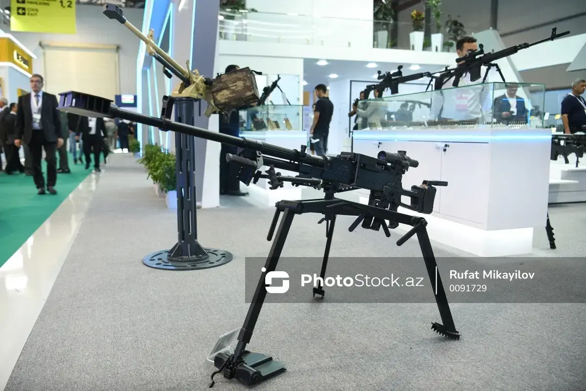 Демонстрируются пулеметы отечественного производства. Пулемет AZ 14.5 калибра 14.5x114, а также İPP 12.7 и AH 12.7 калибра 12.7x108 устанавливается на легкобронированную технику.