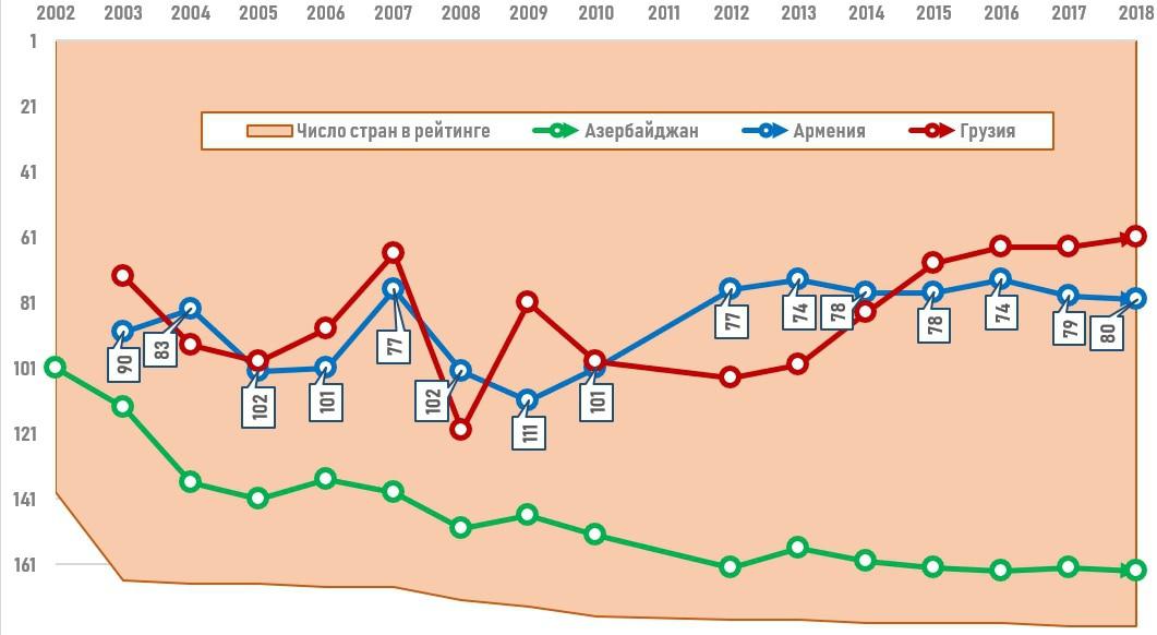 Страны Южного Кавказа в Индексе свободы прессы (Reporters Without Borders), место в рейтинге