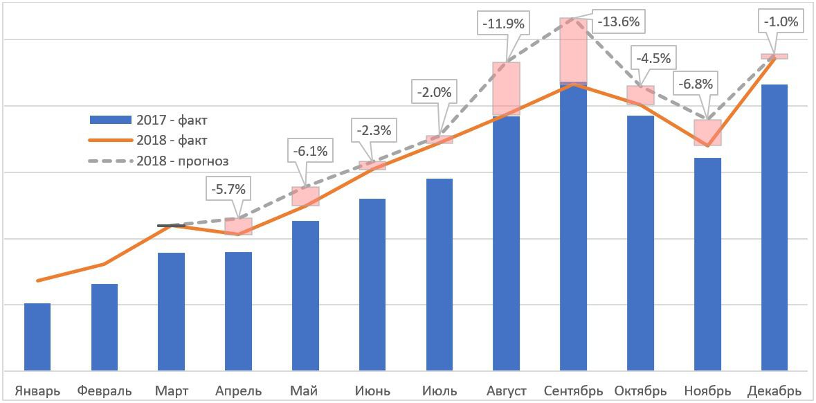 А что было бы, если бы не было революции и реализовался бы сценарий моего прогноза на основании цифр за первый квартал? Попробуем пересмотреть график №2 с этим условием.