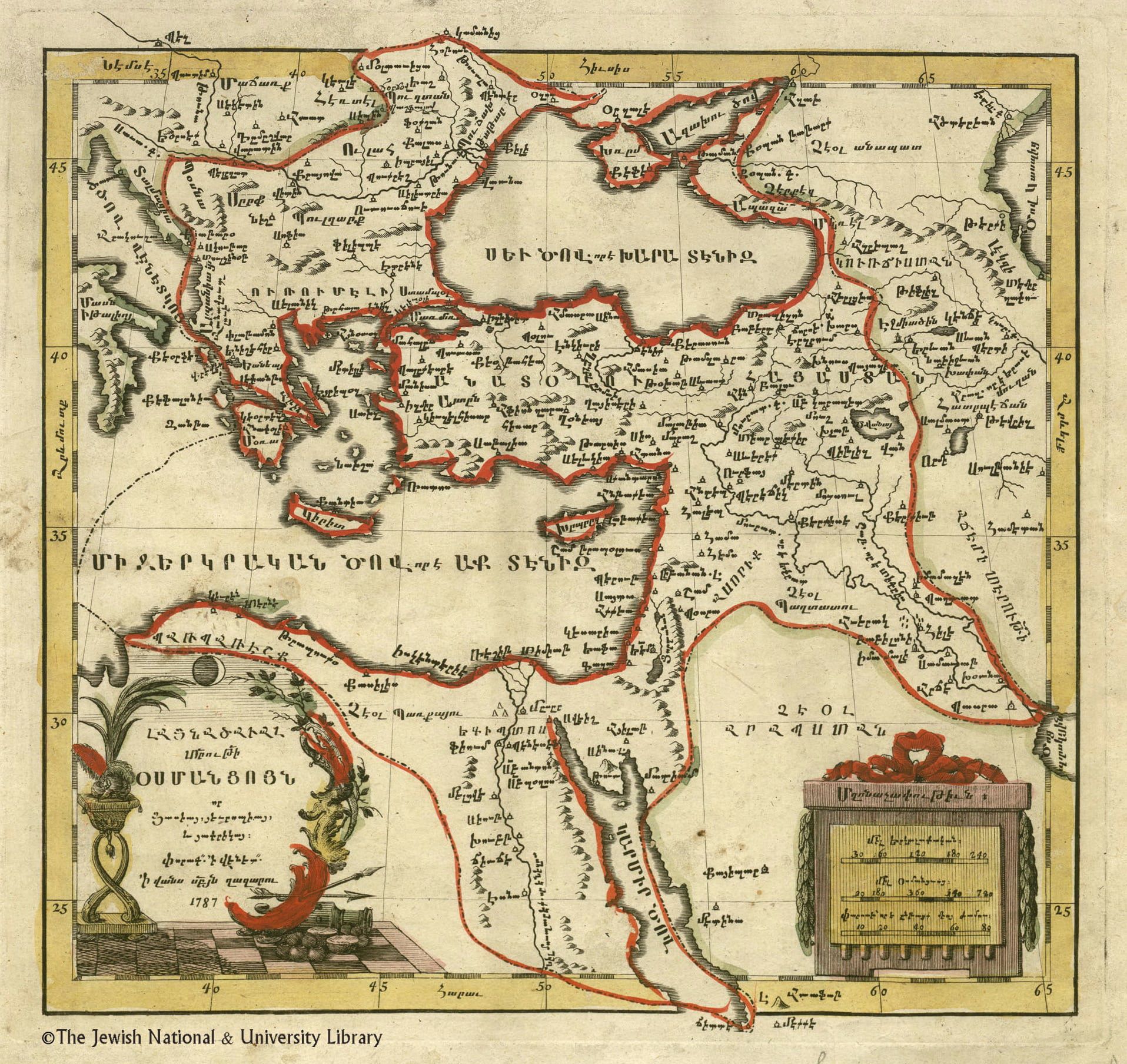 Ниже – карта Османской империи, составленная армянскими географами и напечатанная в 1787 году в Венеции на печатном станке на острове св. Лазаря.