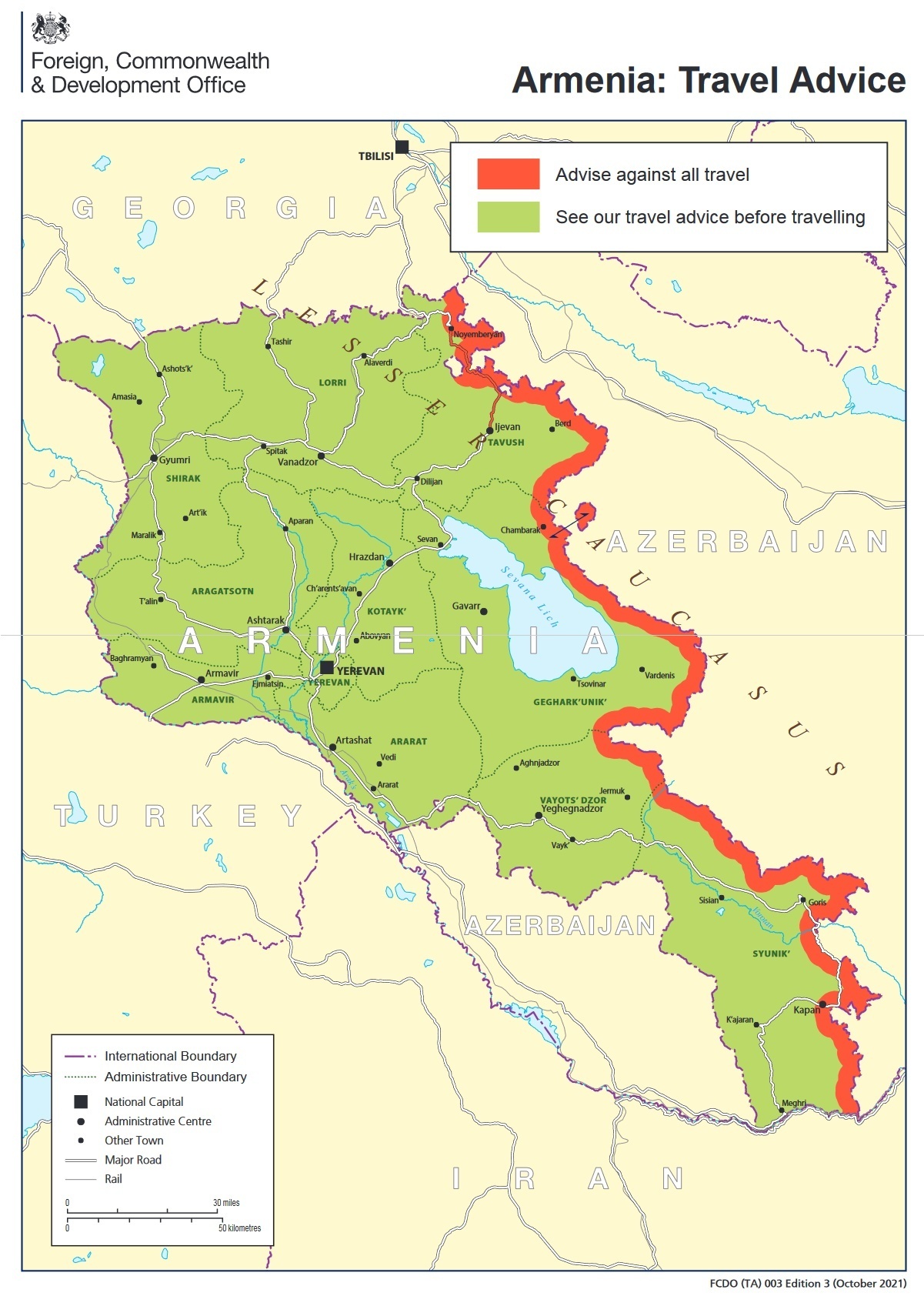 Посольство Великобритании 14 сентября призвало своих граждан не посещать 5-километровую приграничную зону с Азербайджаном, а также участок дороги между Иджеваном и Ноемберяном.