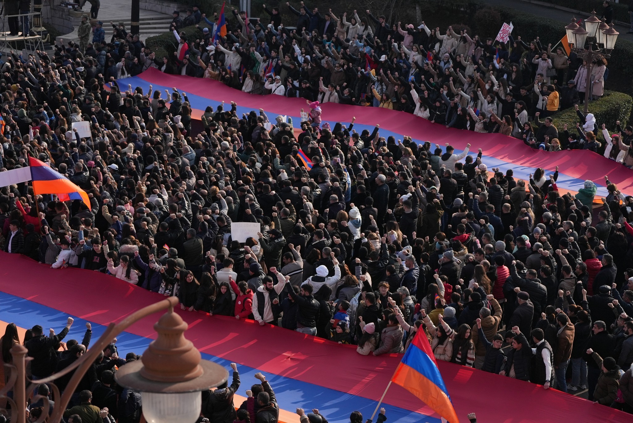 Вчерашний митинг (25 декабря 2022 года) был тоже очень массовым, но число участников было несколько меньше, судя по фотографиям, снятым с высоты, так что была ниже плотность и границы толпы. Это объяснимо, так как из-за нехватки топлива движение по республике затруднено и многие арцахцы из районов не смогли приехать в Степанакерт для участия в акции. Тем не менее, по фотографиям акция была более чем впечатляющая с вероятным числом участников от 35 до 38 тысяч человек. Основным требованием было открыть дорогу жизни немедленно и безо всяких предусловий.