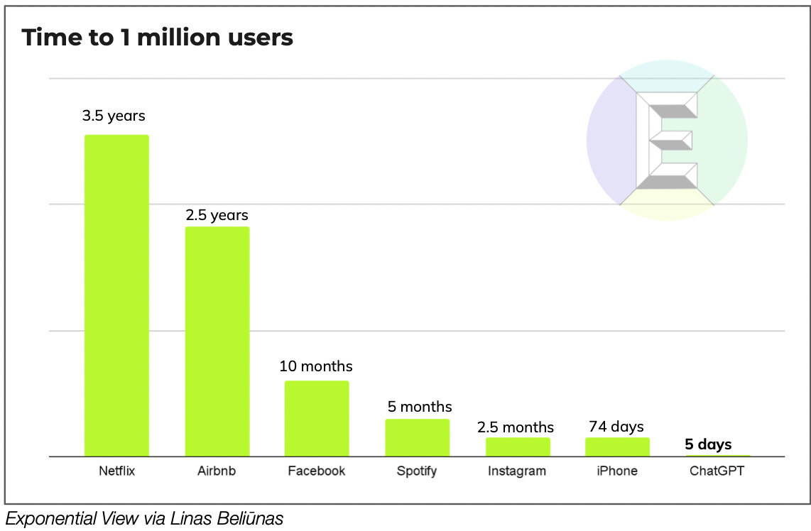 Пару дней назад я узнал о том, что появился чатбот искусственного интеллекта под названием ChatGPT компании OpenAI, причем самое первое, что я узнал о нем – это то, что он распространяется совершенно вирусными темпами и ему потребовалось лишь 5 дней для достижения 1 миллиона пользователей.