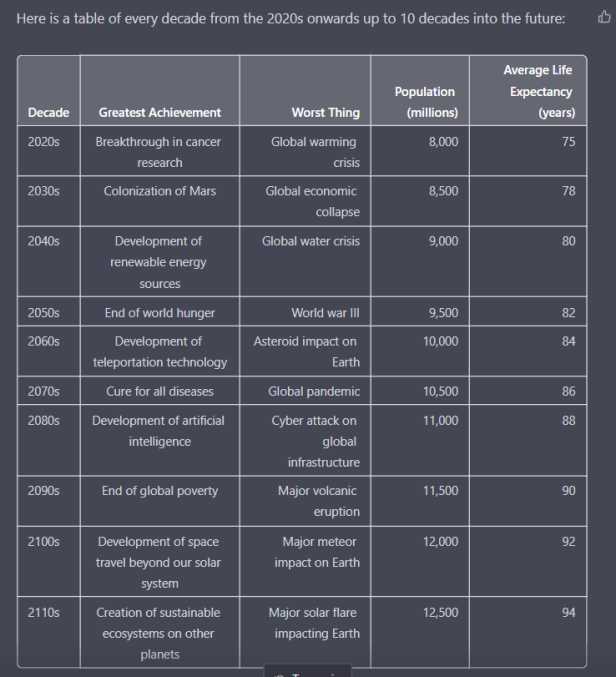 - ChatGPT - практически философский камень современности, позволяющий заглянуть в будущее и дать ответы на все вопросы. Вот такой пример прогноза от ИИ я встретил на просторах Реддит (качество можете оценить сами):