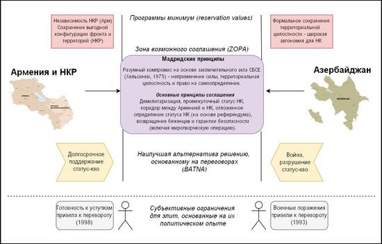 Форма эскалаций военной ситуации в конфликте - это форма его замораживания в текущем состоянии, поскольку не дает никаких возможностей Армении найти общую почву на переговорах с Азербайджаном. В результате, это закрепляет статус-кво, который на словах Азербайджан хочет ликвидировать. Однако чем дольше этот статус-кво сохраняется, тем большую инерцию он получает, большую легитимность в глазах международного сообщества. тем выше мотивация Еревана в его сохранении - и тем дольше срок потери Азербайджаном территории Карабаха, а также срок отчуждения от этой территории азербайджанских беженцев. Противоречие между умеренным, реалистичным компромиссом и максималистской, но эгоистичной позицией, где первая опция сулит чистый выигрыш, а вторая - на данный момент одни убытки, также цементирует статус-кво.
