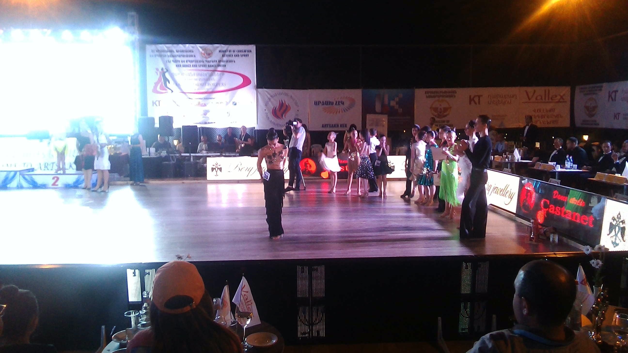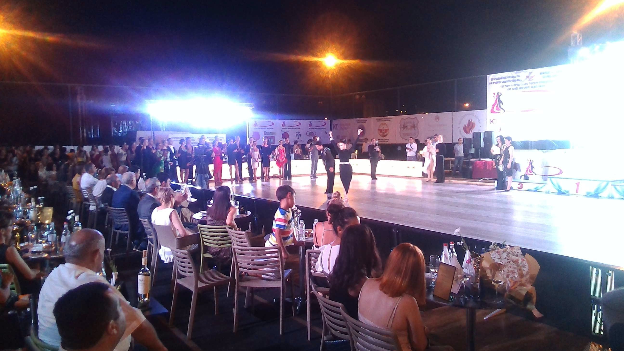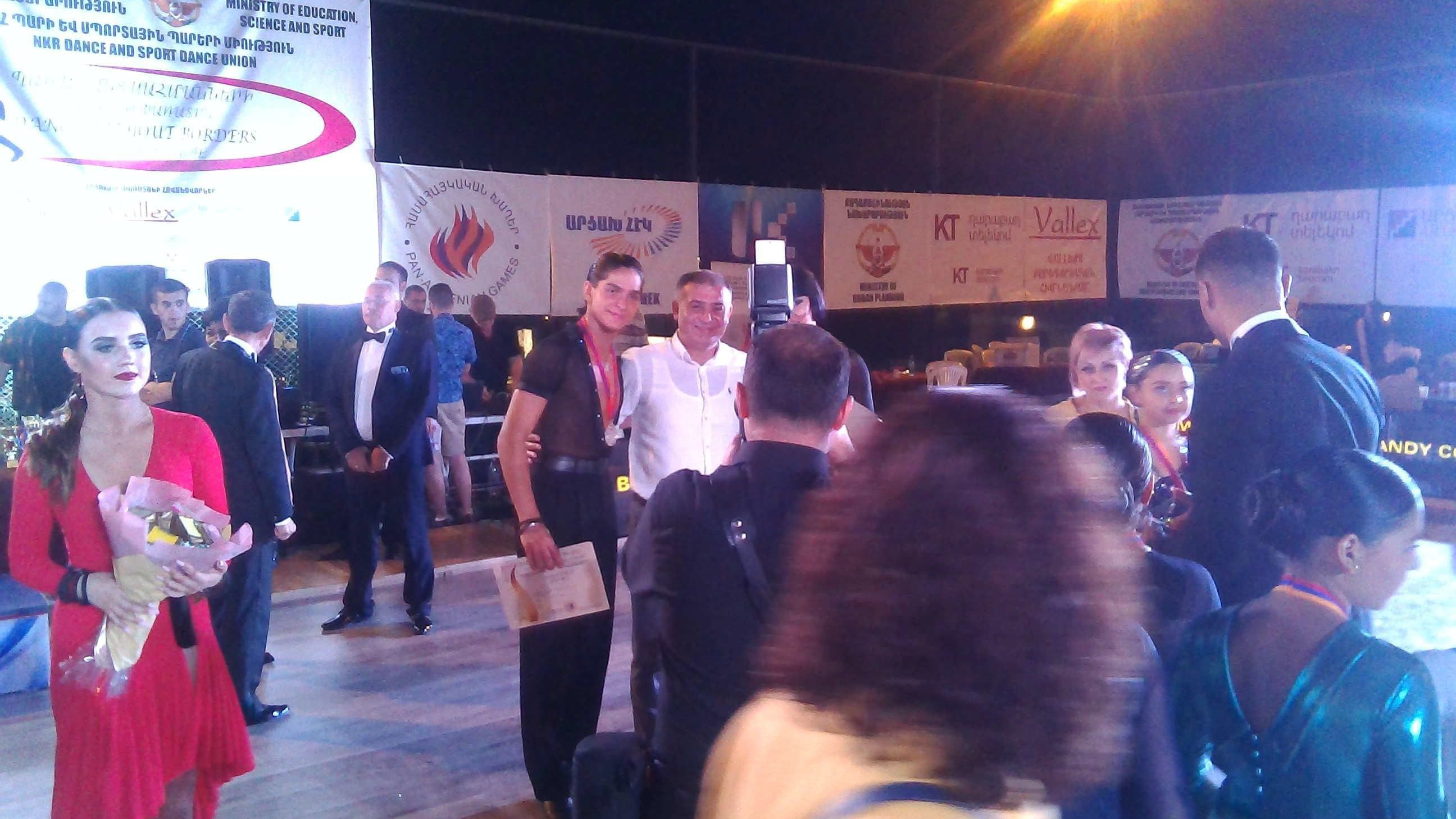 Телефон я не нашел, зато увидел финал конкурса. Потрясающее зрелище: пары из Москвы и Санкт Петербурга, из Киева и Милана, из Еревана и Степанакерта. Сверкающие, красивые, гибкие - их танцы завораживают. Конкурс проходил около гостиницы "Валекс". В первых рядах я заметил даже президента НКР Бако Сааковича Саакяна, он и вручил главный приз победителям - "Кубок президента" и нашего министра иностранных дел Масиса Самвеловича Маиляна. Атмосфера конкурса была веселой, вход был бесплатный, зрители шумно аплодировали и поддерживали танцоров. Кроме потери телефона, других ЧП не было). Ведущий в белом костюме, объявил о потере телефона, нашедший принес ему, я подошел посмотрел, оказалось не наш, видимо, не мы одни растяпы). Завтра найдется, гудки идут, значит не своровали, да и мало у нас такого. После раздачи призов и кубка, прозвучала песня "Ов сирун сирун" ( помните из к/ф "Мимино") и все пары вышли на танцпол. Люди подходили,поздравляли и фоткались на память. Отличный праздник для степанакертцев и для участников. Все фото мои.