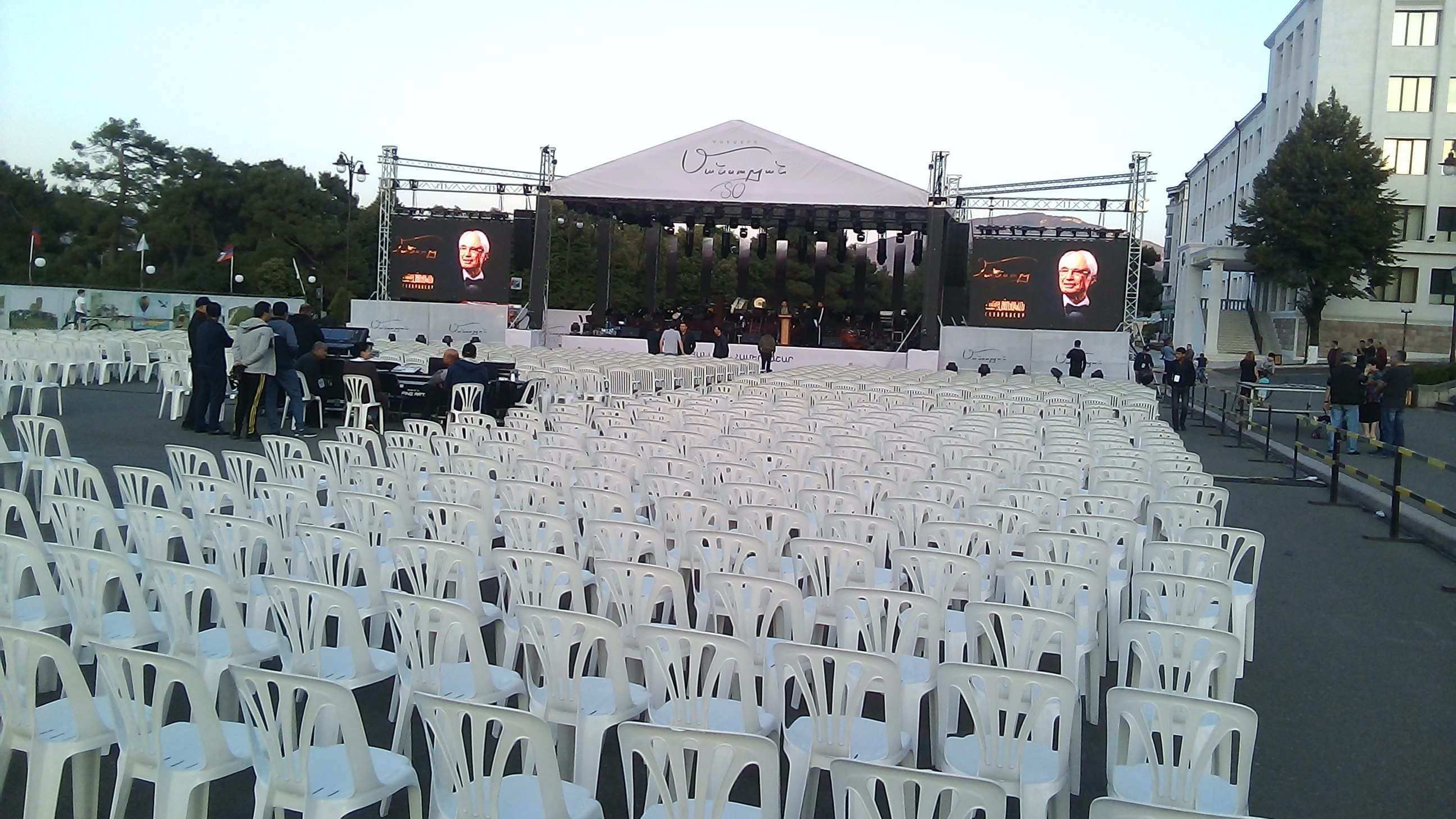 На площади идут приготовления к концерту армянского композитора, Тиграна Мансуряна. Возможно, будут выступать и другие наши звезды, но Тигран Мансурян - величина мировая. Можете посмотреть кто исполнял его композиции, имен много.