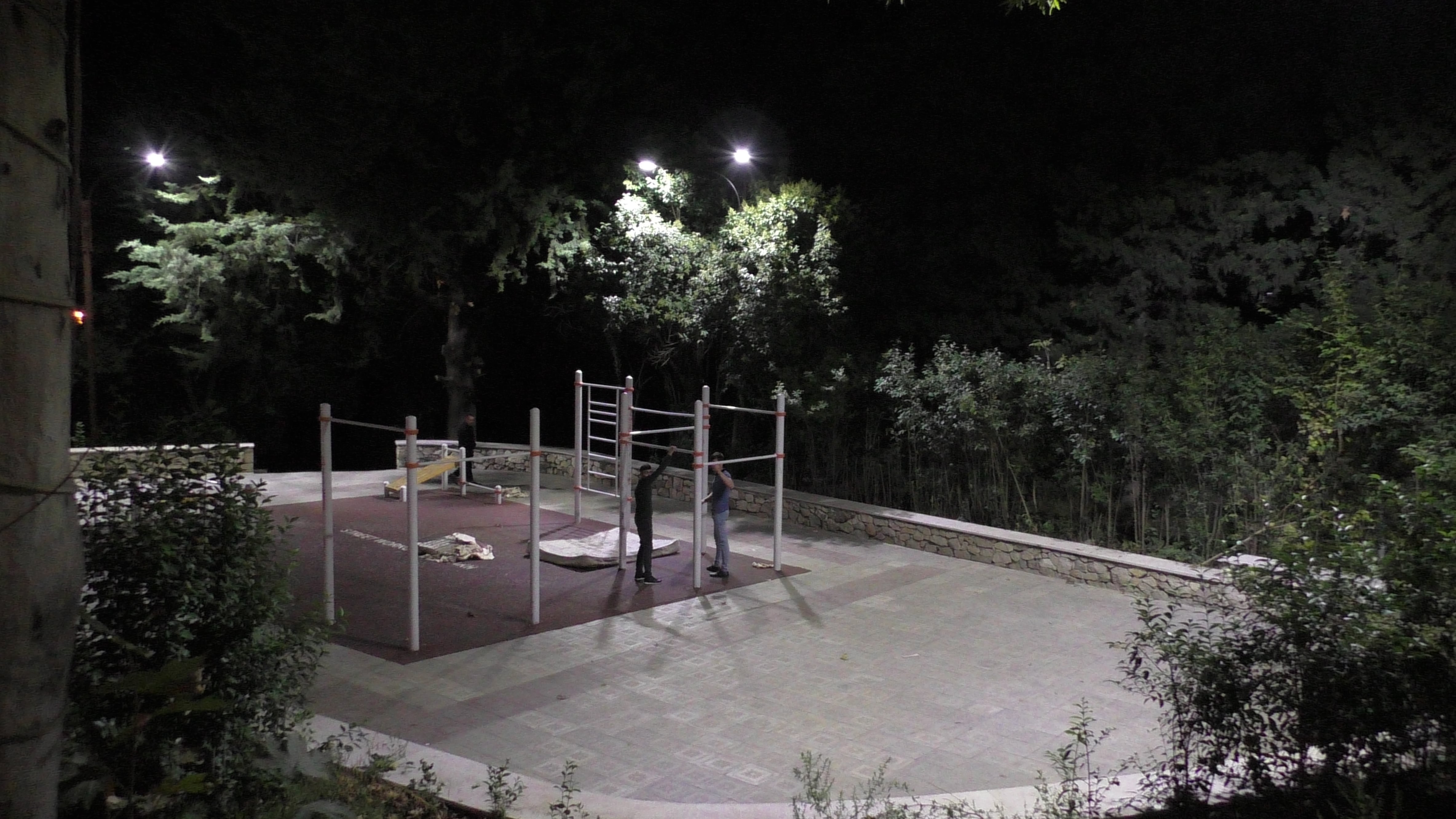 Лишь трое парней остались у турников в парке.