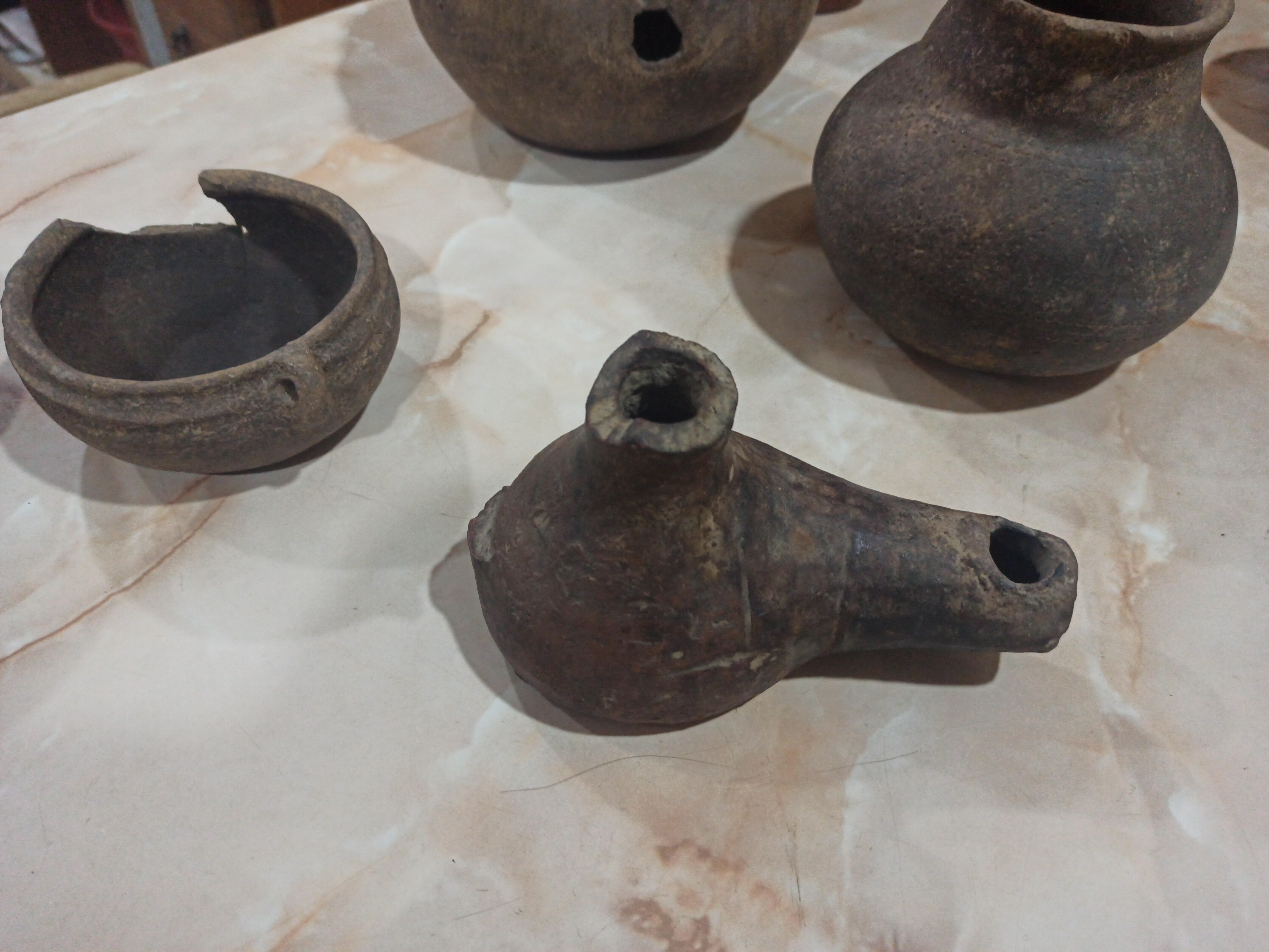 Обычно показываю свою коллекцию древнего оружия, на этот раз расскажу о глиняных изделиях из моего собрания. Чего там только нет: карасы для хранения вина, кувшины для воды, большинство со сломанными носиками, кувшин для сбивания масла из сливок, лампада масляная и многое другое.