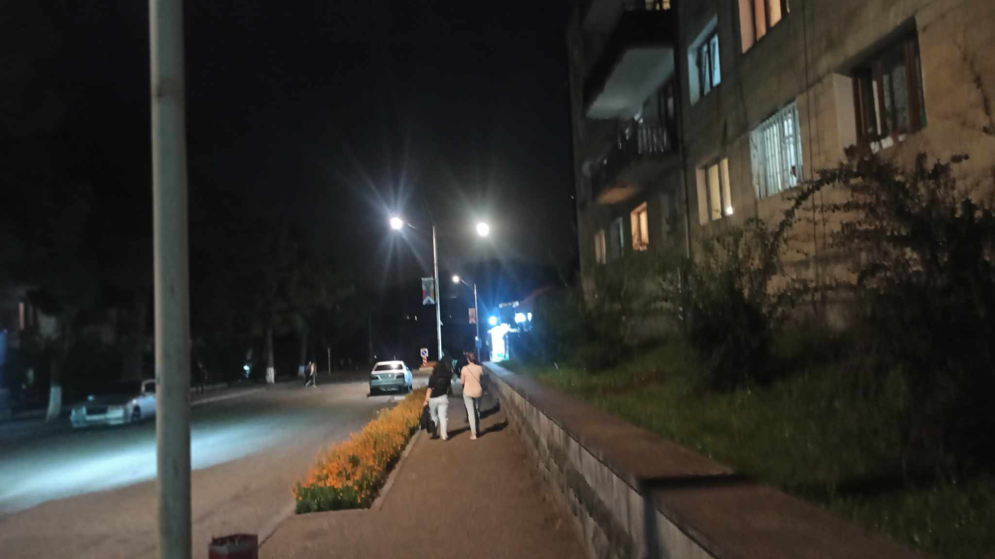 Вечерний Степанакерт, справа над горою светит круглая луна, привет осень называется