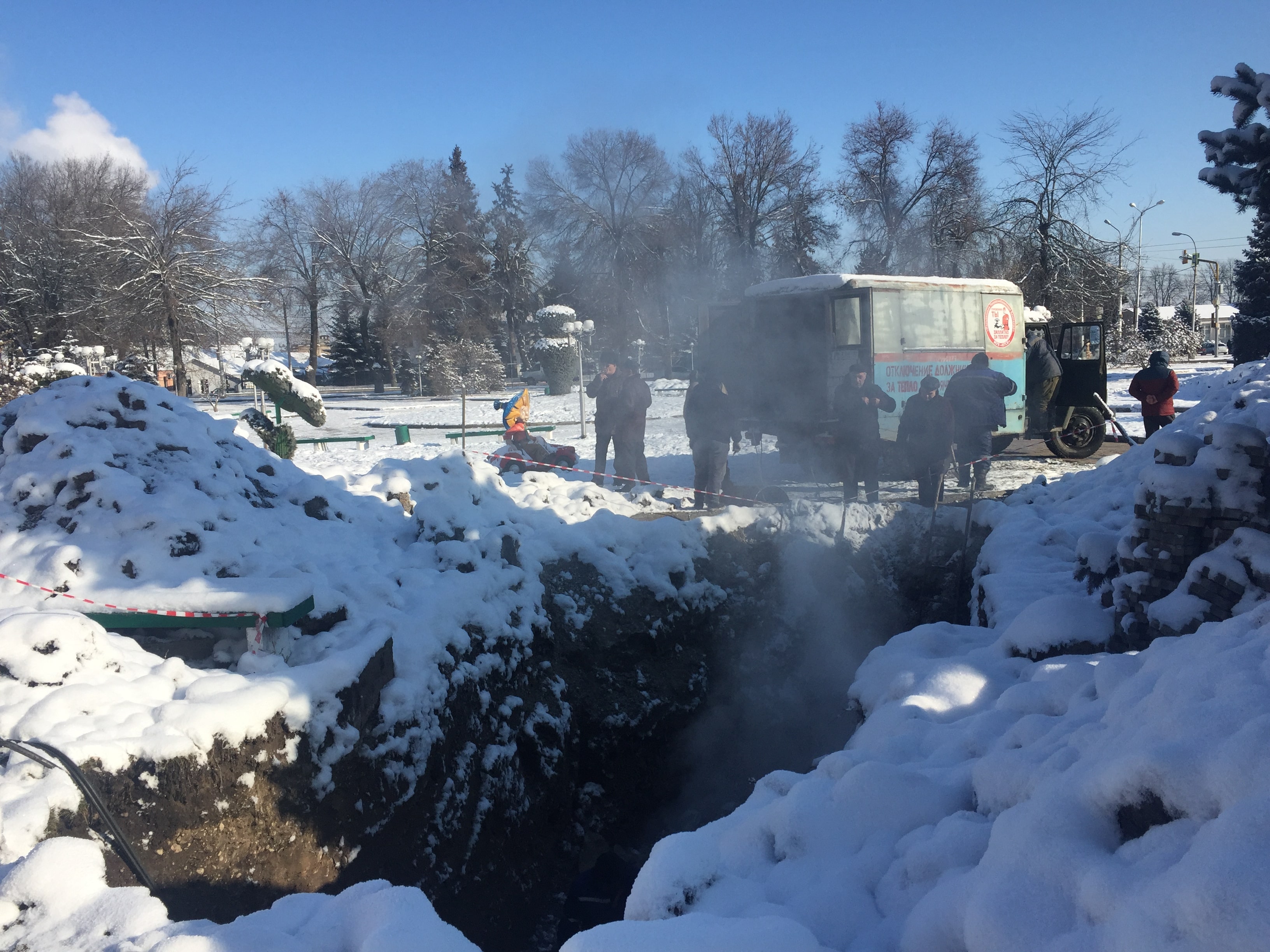 Особо подчеркиваю, что за этот отопительный сезон данное отключение - одиннадцатое по счету. Три дня сидим в тепле, два дня – в холоде. Либо наоборот, два дня в тепле, три дня – в холоде. Почему это происходит, видно невооруженным глазом. То тут, то там из теплотрассы наружу начинает вырываться горячий пар. Это говорит о том, что в данном месте лопнула труба теплопровода и горячая вода уходит в землю.  Потом приезжает машина аварийной службы,  открывают люк, выкачивают  воду и  начинаются работы по ремонту  трубы.