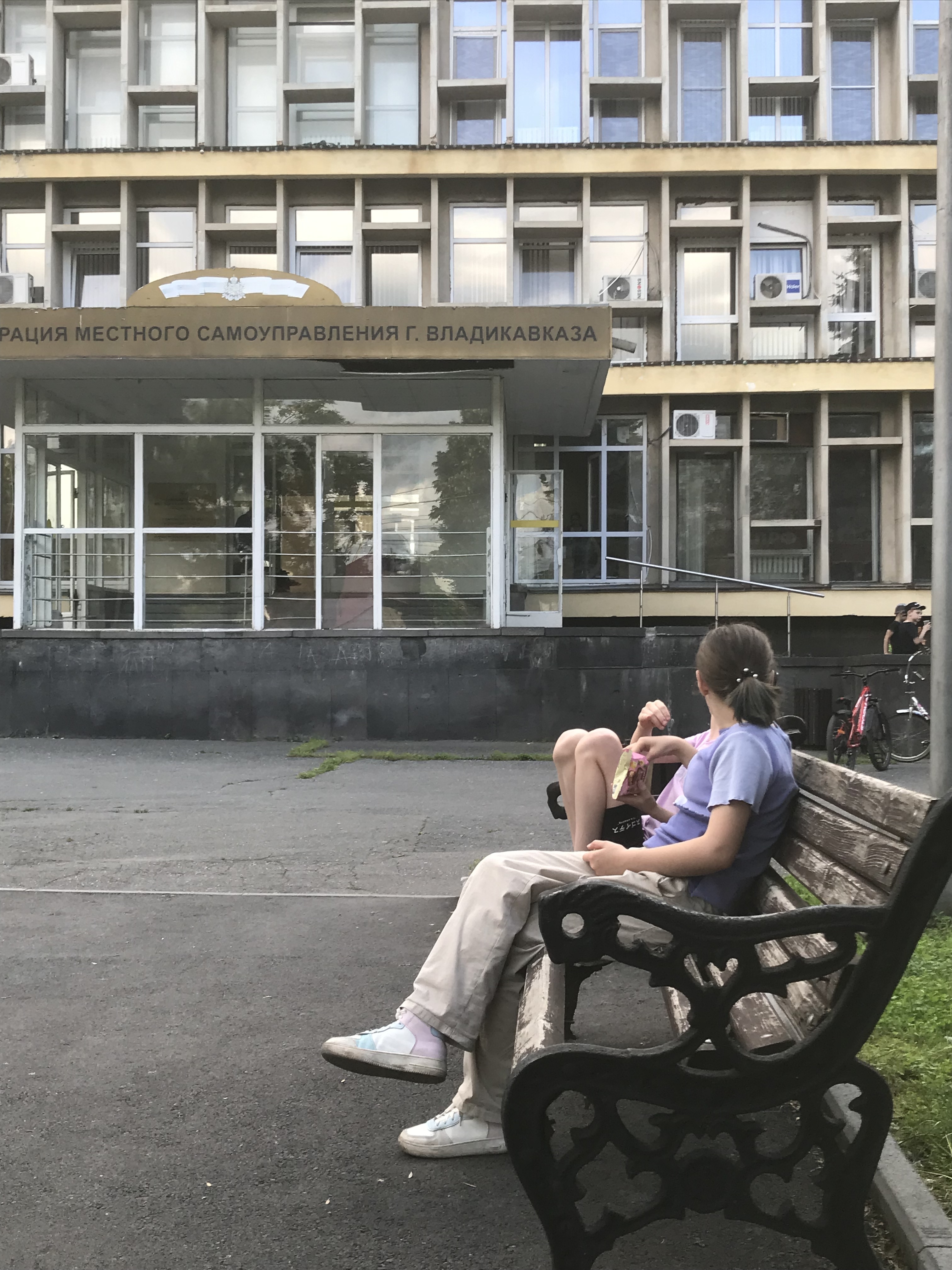 Дырявые скамейки, покосившийся столб и заросшие клумбы - так выглядит территория у одного из зданий администрации Владикавказа, организации, которая отвечает за комфорт и красоту города. Внушает доверие примерно как диетолог с ожирением, девственник-сексолог и стоматолог с золотым зубом. Но я не из тех, кто судит по картинке. Посидела на такой скамейке и пришла к выводу, что на ней очень удобно дышать маткой. По случаю отправила в астрал запрос на ливнёвки. Спасибо, мэр!