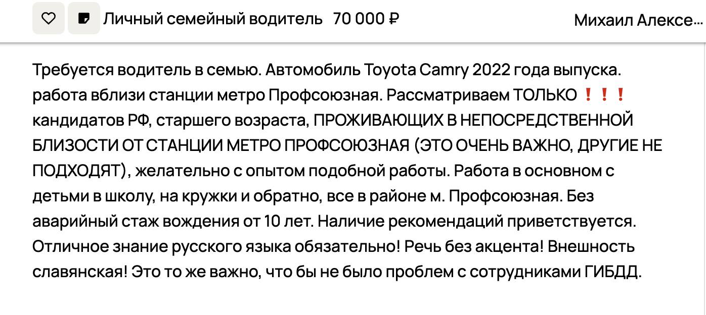 Зашла на Авито, полистала московские вакансии, сходу нашла такие объявления:
