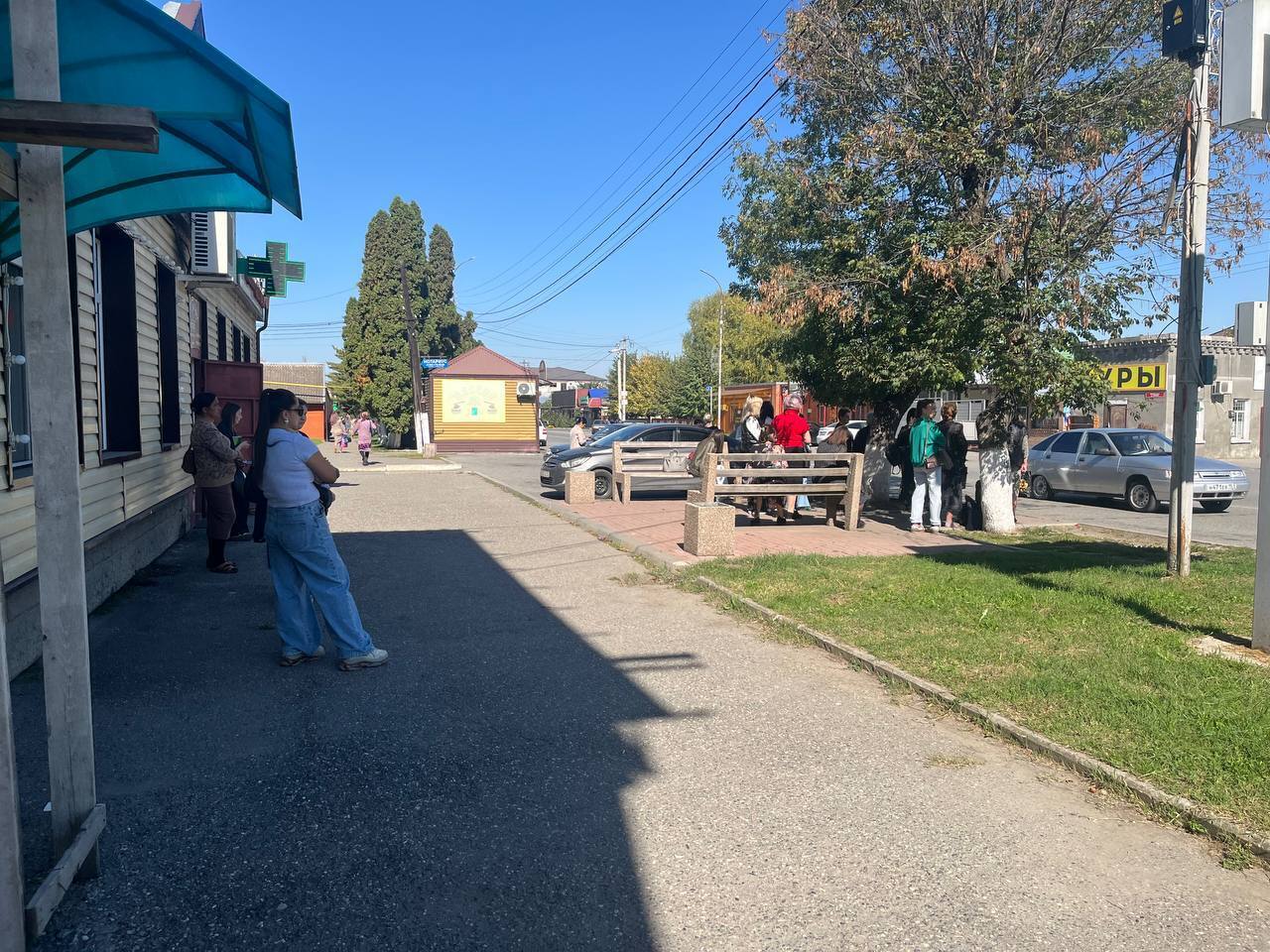 Из Эльхотово уезжаю на другой день утренним рейсом. Тоже прихожу на остановку наугад, местные говорят, что маршрутка должна прийти в 10:50. К этому времени на остановке в центре села собирается народ. Считаю людей - на 25-ом сбиваюсь, потому что все рассредоточились в поисках тени, но уже понятно, что в газель мы все не поместимся. Видимо, этот нехитрый подсчет проводят в своей голове и другие люди, поэтому начинают подходить поближе к обочине, чтобы успеть пролезть, когда маршрутка подъедет.