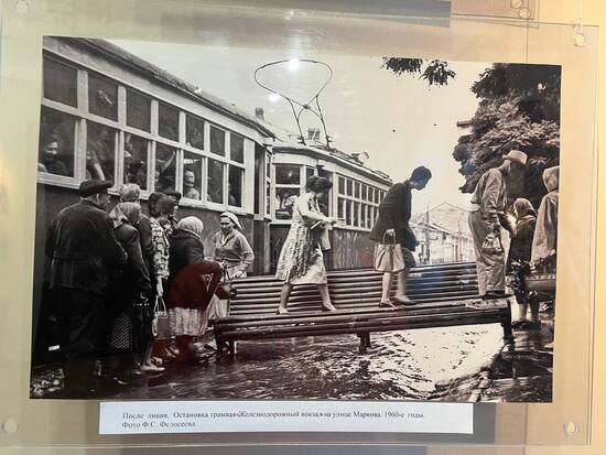 Улица Маркова у железнодорожного вокзала совершенно не изменилась. При малейшем дожде тут происходит такой вот потоп, ливнёвки всегда забиты и не справляются, картинка бывает один в один. Ну какова преемственность, аж мурашки от этого: