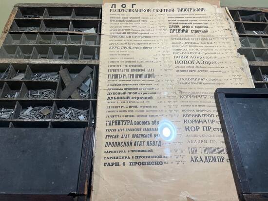 На первом этаже сохранились кабинеты издательства "Терек" и "Казбек". На стенах тот же рисунок, что и был раньше: