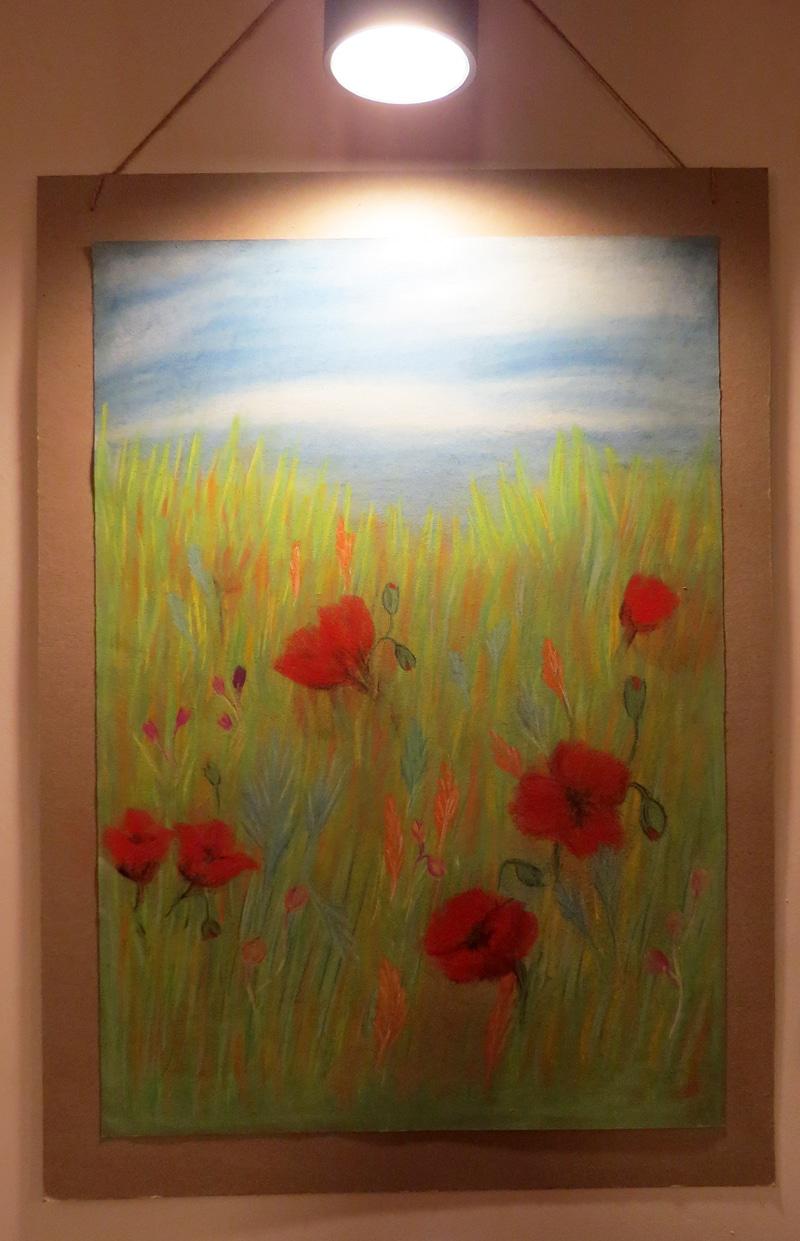 Всматриваюсь в нехитрые карабахские пейзажи написанные пастелью (графическое искусство) и чувствую, как от них исходят приятная грусть, покой и умиротворение. Горы, пашня, ярко красные маки, фиолетовое поле с полевыми цветами... Тишина..  Я заворожено смотрел на «простые» работы Кнар, чувствуя теплоту и уют... Мир патриархальный, но такой манящий...