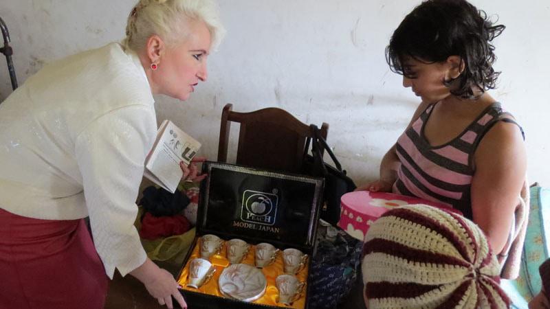 Сирвард дарит Анжелле, старшей дочке, кофейный набор.
