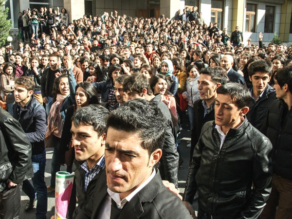 Сотни студентов педагогического университета провели акцию протеста. Баку, 21 октября 2013 г. Фоторепортаж корреспондента "Кавказского узла" Азиза Каримова