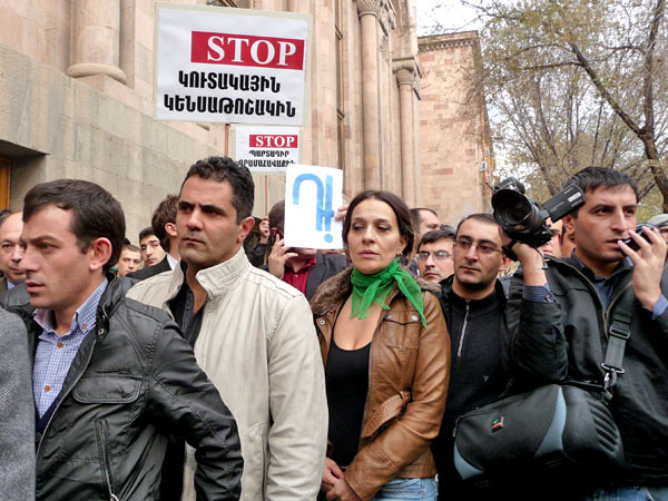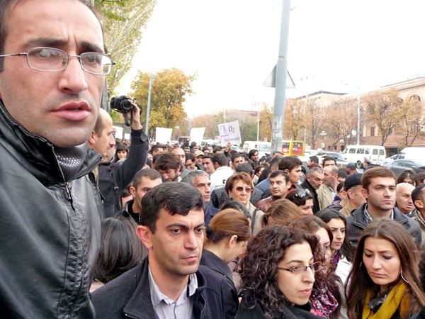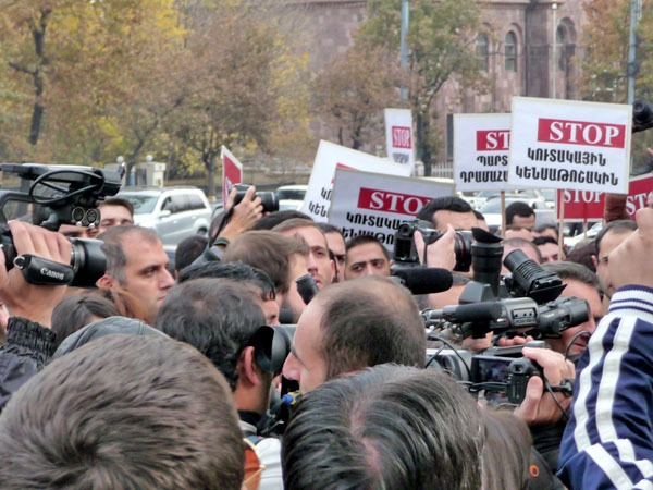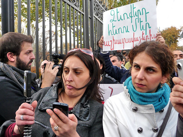 Участники акции протеста потребовали от властей Армении доработать реформу пенсионной системы, которую планируется ввести с января 2014 года. Ереван, 15 ноября 2013 г. Фоторепортаж корреспондента «Кавказского узла» Армине Мартиросян